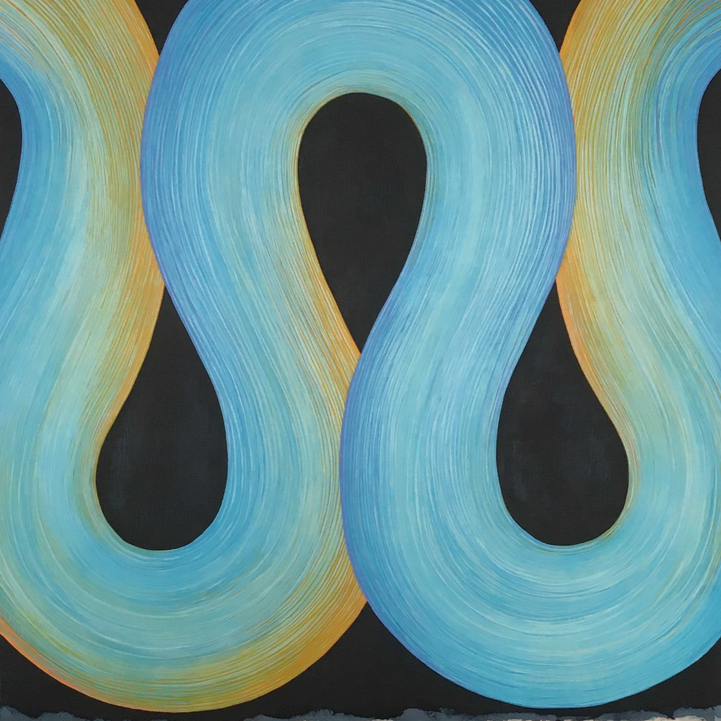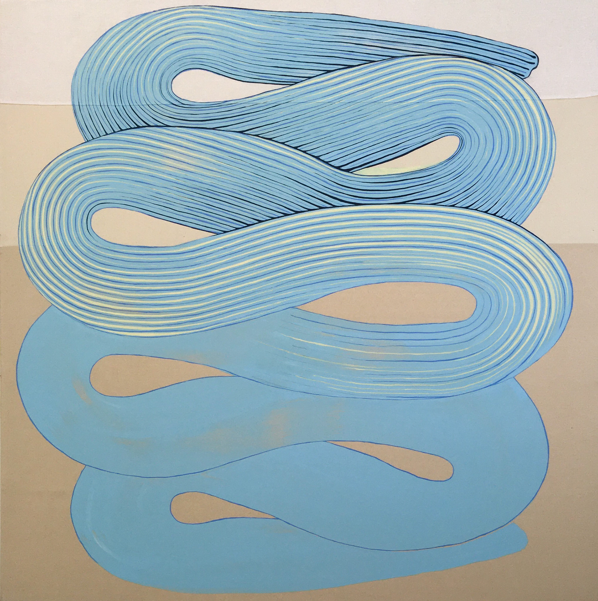 An exploration of duality and transformation are central themes when an unexpected collision can cause something simple to be changed into something complex and entirely different. Milk & Butter, for example, takes the mundane, often mindless gestures of spreading butter on toast and spilling milk on the kitchen floor creating two mirror images that first seem to connect closely with each other. But the textures of the paintings express completely opposite states the flat fluid form of natural milk (or cream) and the thick sculptural shape of the same substance after it has been whipped into synthetic butter. Pairs of simple forms like these can reveal and embrace contradiction and show us how we can be both grounded in and disconnected from our own experiences.